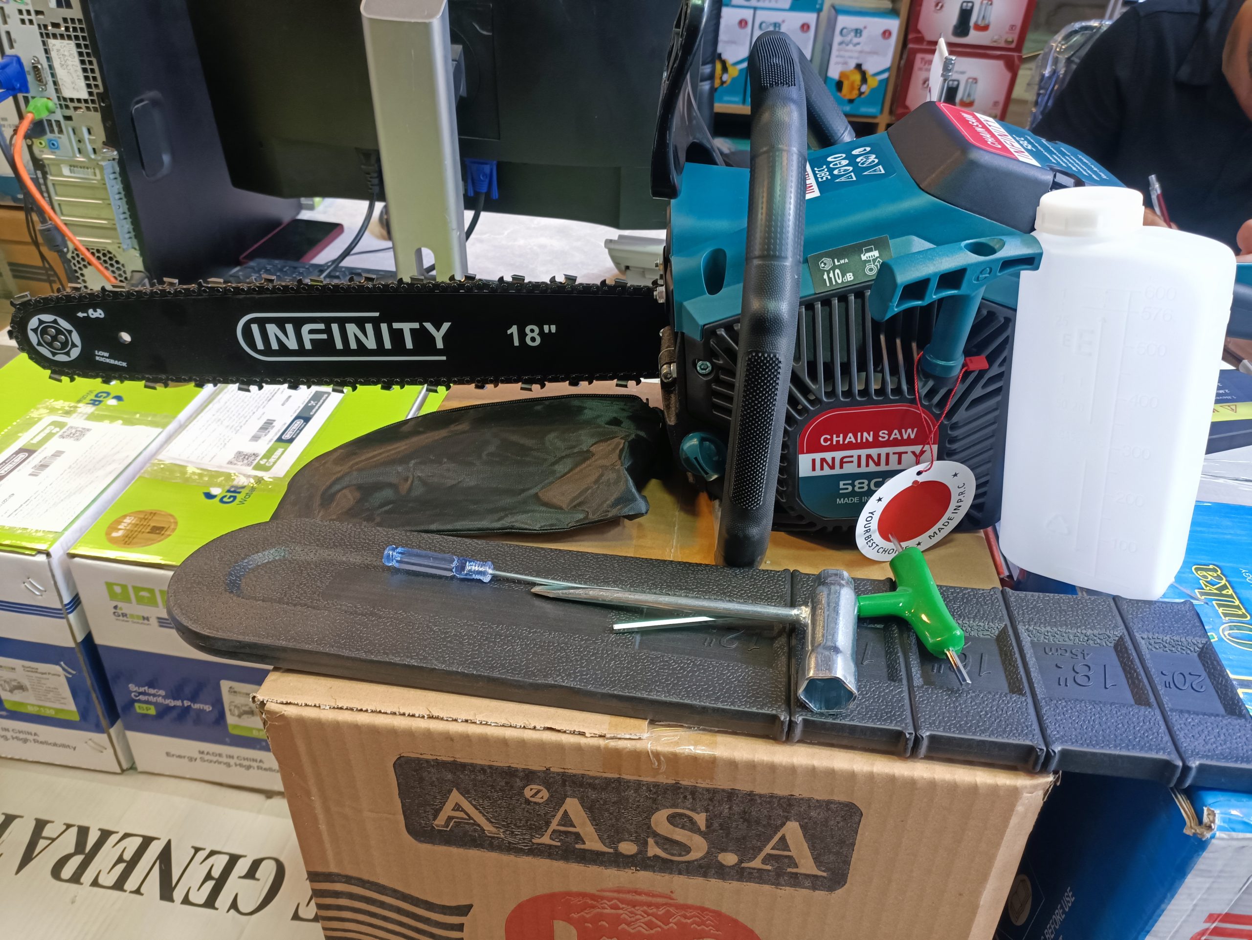 - مدل و قدرت: این اره برقی از برند Infinity با موتور 58 سیسی است که برای کارهای خانگی و نیمهحرفهای مناسب است.