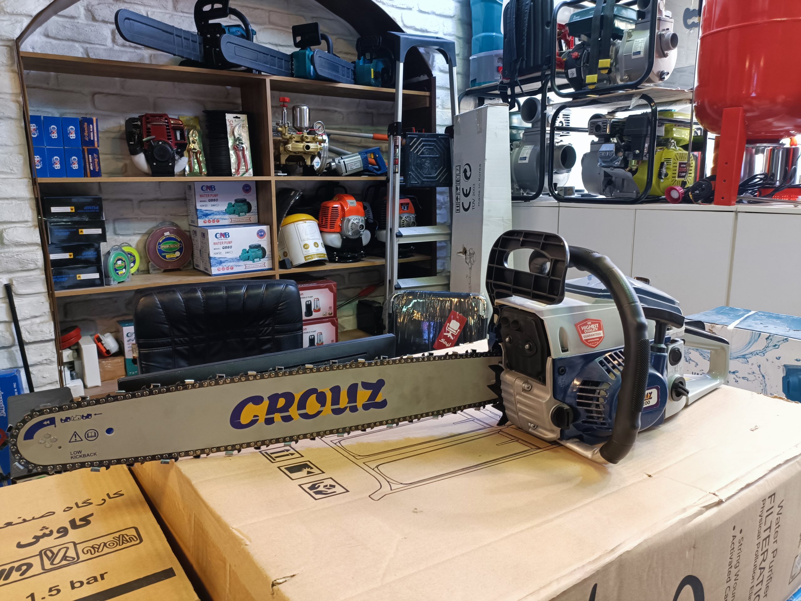 تیغه و زنجیر مقاوم: تیغه 52 سانتیمتری همراه با زنجیر چینی باکیفیت برای برش دقیق و روان.